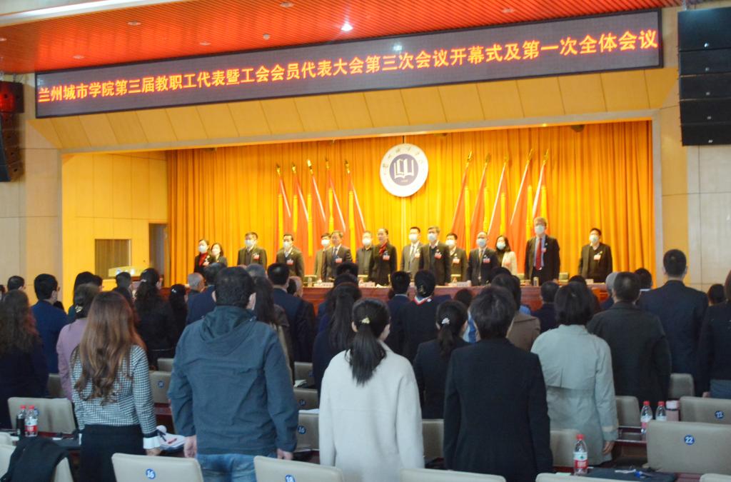 3月19日上午,beat365在线唯一官网第三届教职工代表暨工会会员代表大会第三次会议开幕。学校领导班子成员许尔忠、曹洁、王基、李慕堂、牟录贵、方忠义、王珺、陈伟出席大会开幕式暨第一次全体会议。会议由校党委书记许尔忠主持。学校“两代会”代表、特邀代表、列席代表参加会议。