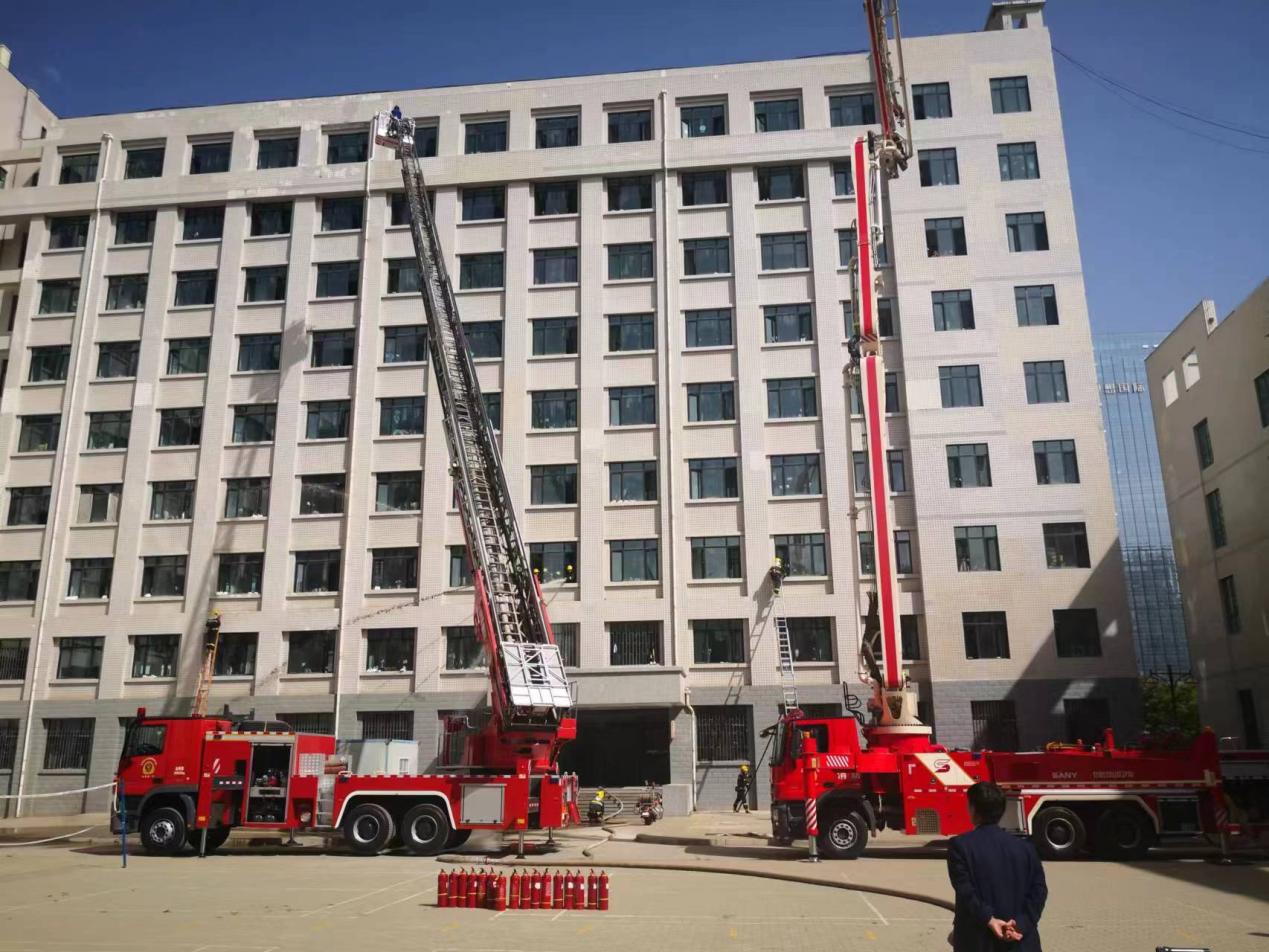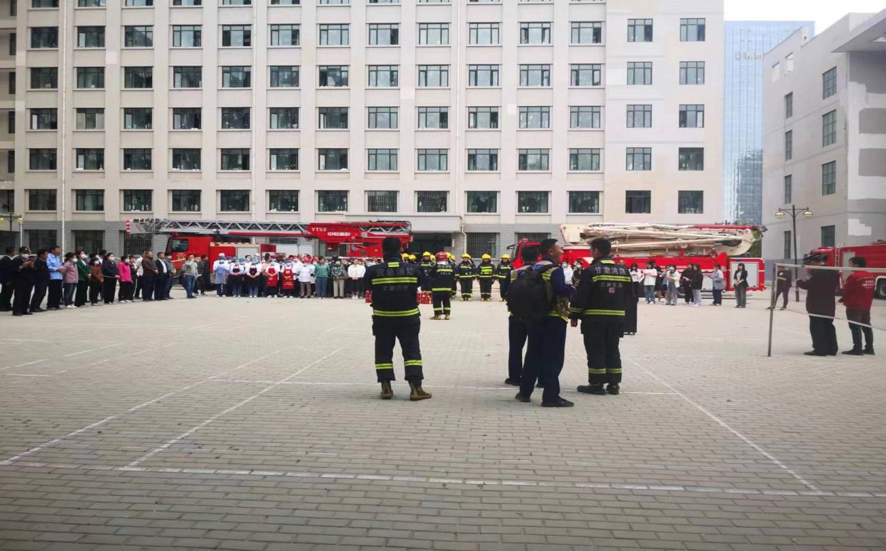 安宁消防大队调配11辆消防车,在10#学生公寓现场进行模拟火情的处置及疏散救援示范演练,从发现火情、报警、救援出动、救援到达,一切指挥得力,井然有序,忙而不乱,将10#学生公寓3楼被困学生成功救出。
