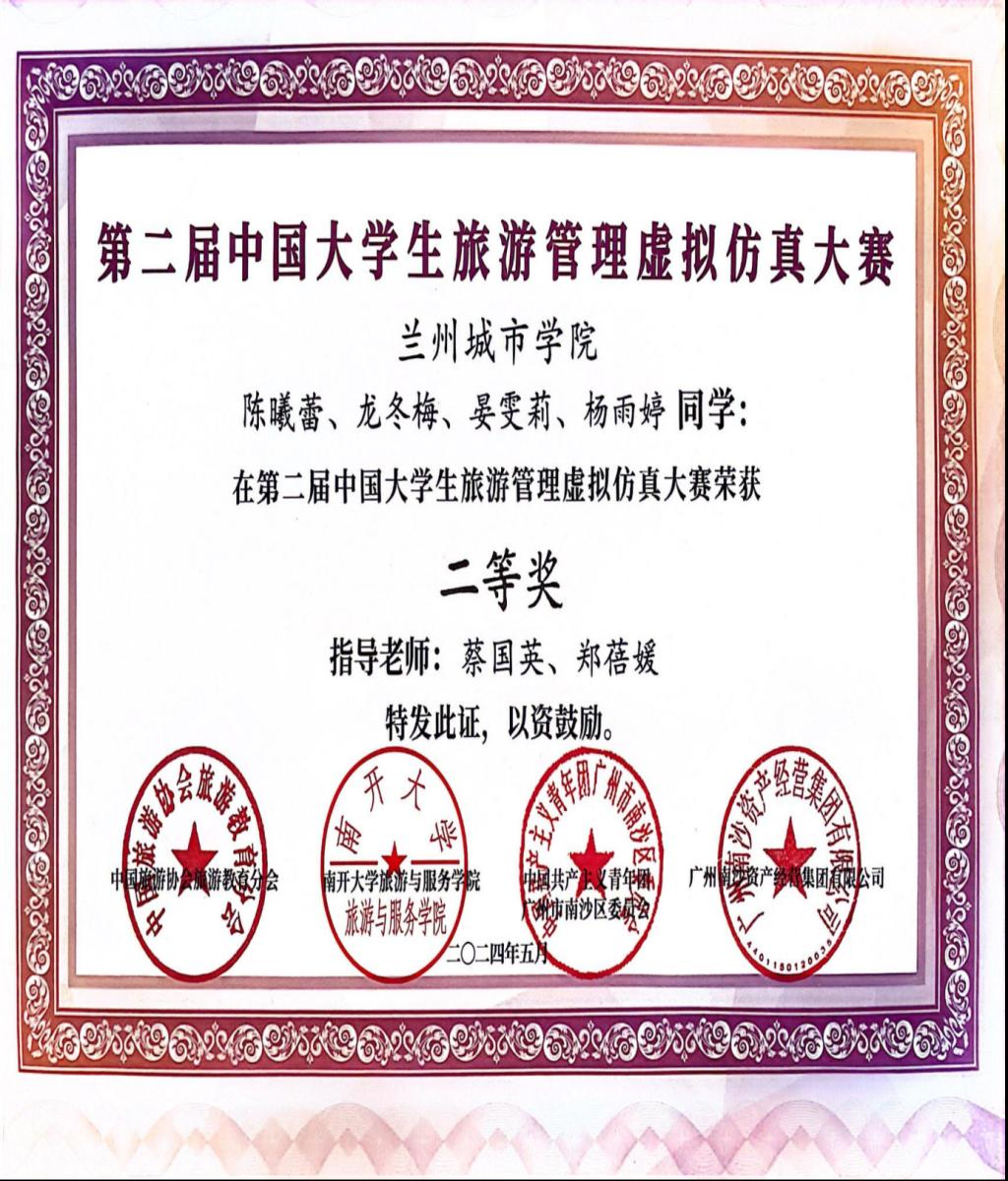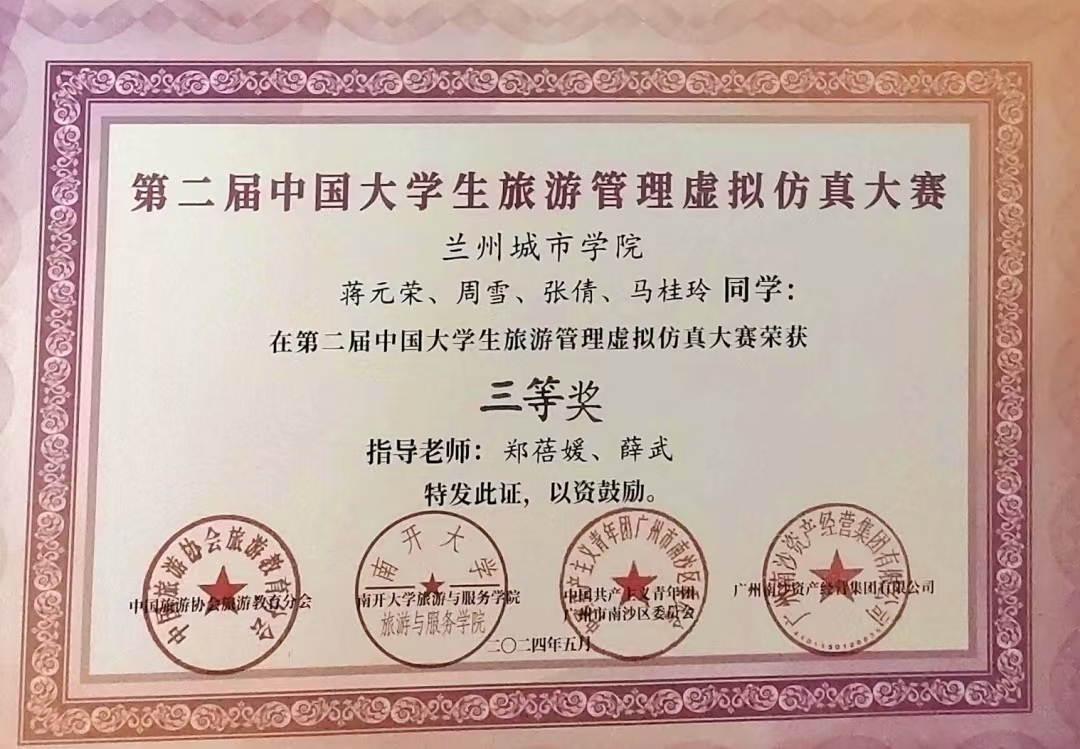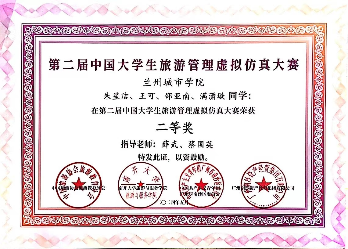 本赛事由中国旅游协会旅游教育分会、南开大学旅游与服务学院、中共广州市南沙区共青团委联合举办,历时两个月。全国163所高校526支参赛队伍经过激烈角逐,由beat365经济管理学院师生组成的beat365在线唯一官网代表队成功晋级决赛。最终,由薛武老师指导的城院一队、蔡国英老师指导的城院三队荣获二等奖,郑蓓媛老师指导的城院二队荣获三等奖,三位老师分别荣获“优秀指导老师奖”。