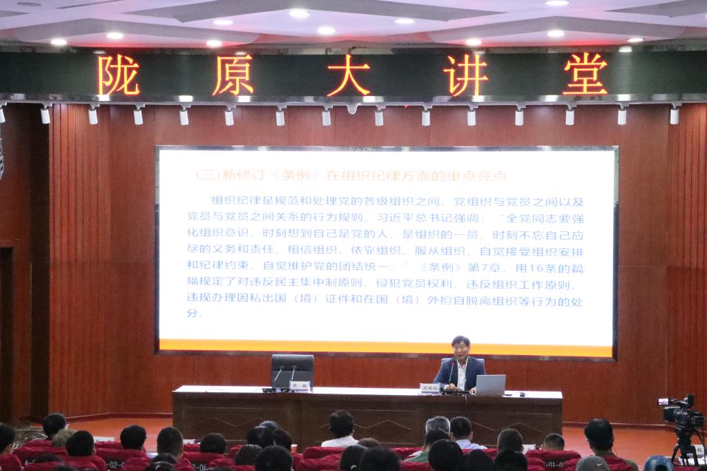 会议邀请中国浦东干部学院原副院长、一级巡视员,华东师范大学中共党史党建研究院特聘教授、博士生导师刘靖北作了题为《强化纪律意识 严守纪律规矩——新修订的〈中国共产党纪律处分条例〉解读》辅导报告。刘靖北教授以习近平总书记关于党的纪律建设系列重要论述为重点,阐述党的纪律建设和党纪教育的重大意义,详细讲解《中国共产党纪律处分条例》新修订的重点亮点内容,总结了在全党开展党纪学习教育,就是要教育引导党员、干部进一步强化纪律意识、加强自我约束,让心存敬畏、手握戒尺真正成为日常自觉,让铁的纪律成为自觉自为的纪律。他强调,党员干部要深入学习贯彻习近平总书记关于全面加强党的纪律建设重要论述,以新修订的《中国共产党纪律处分条例》为重要标尺,全面推进党的纪律建设,为以中国式现代化全面推进强国建设、民族复兴伟业提供坚强纪律保障!