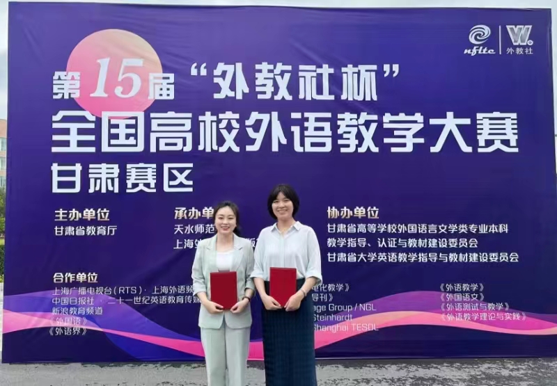 6月15至16日,第十五届“外教社杯”全国高校外语教学大赛甘肃赛区在天水师范学院举办,来自省内18所高校的36名外语教师参加了比赛。beat365在线唯一官网外国语学院教师袁莉、李聃分别荣获英语专业组和商务英语组二等奖。