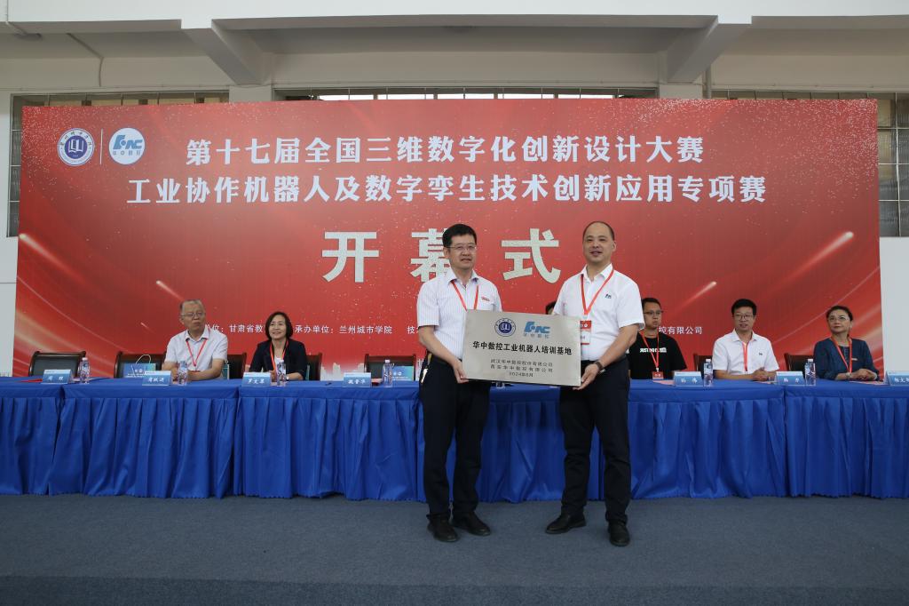 武汉华中数控股份有限公司总裁助理、教育事业部总经理周理在开幕式上致辞,参赛队员代表和裁判专家代表分别进行了宣誓。开幕式后,举行了“华中数控工业机器人培训基地”授牌仪式。