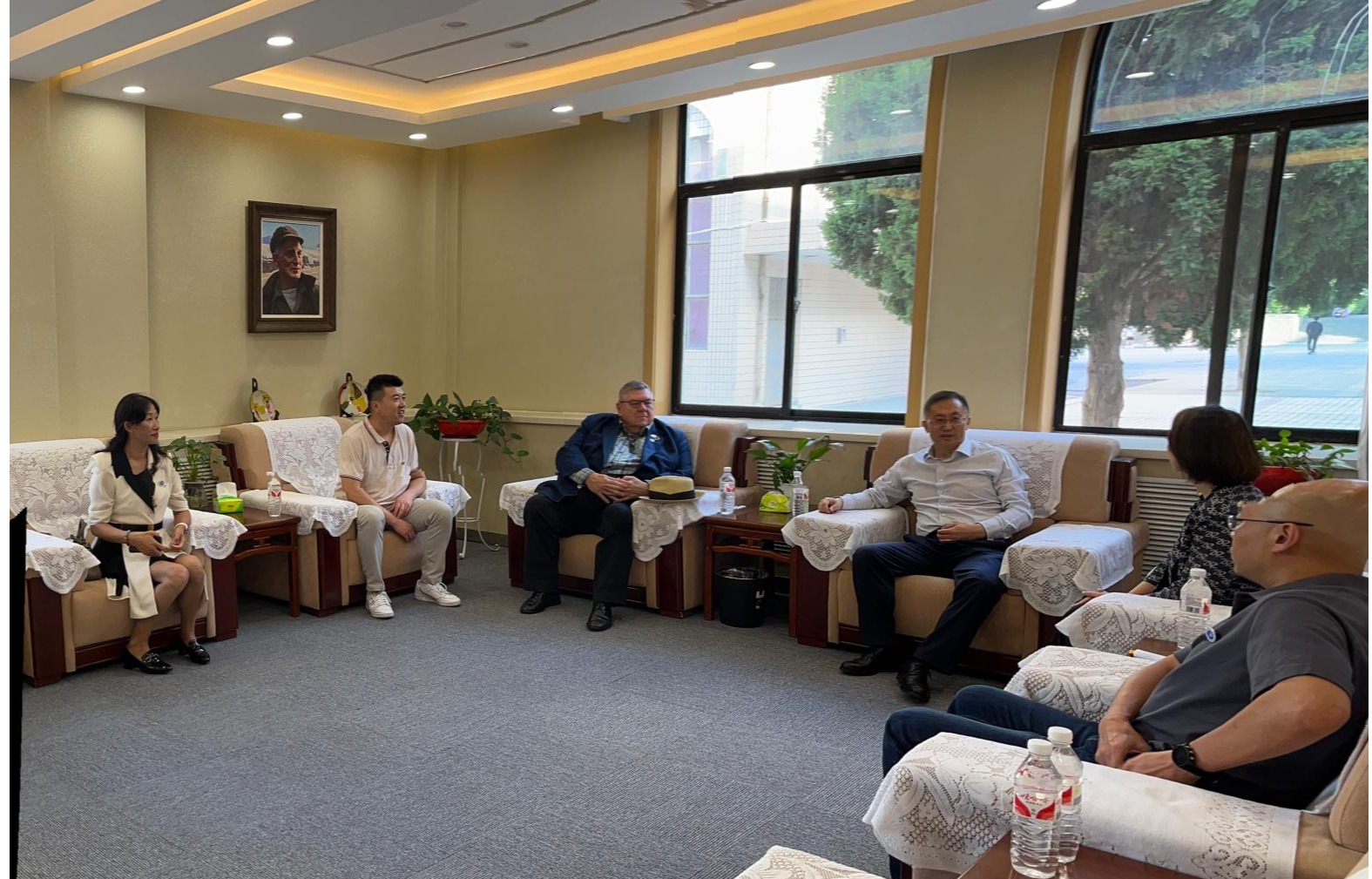 7月5日,新西兰中国友好协会主席黎开盛(Chris Mark Lipscombe)和新西兰甘肃总商会会长梁军伟一行来校访问交流。校党委书记曹洁会见来访嘉宾并陪同参观,校党委副书记、校长韩高年出席座谈会并致辞,校党委常委、副校长张发旺主持会议。