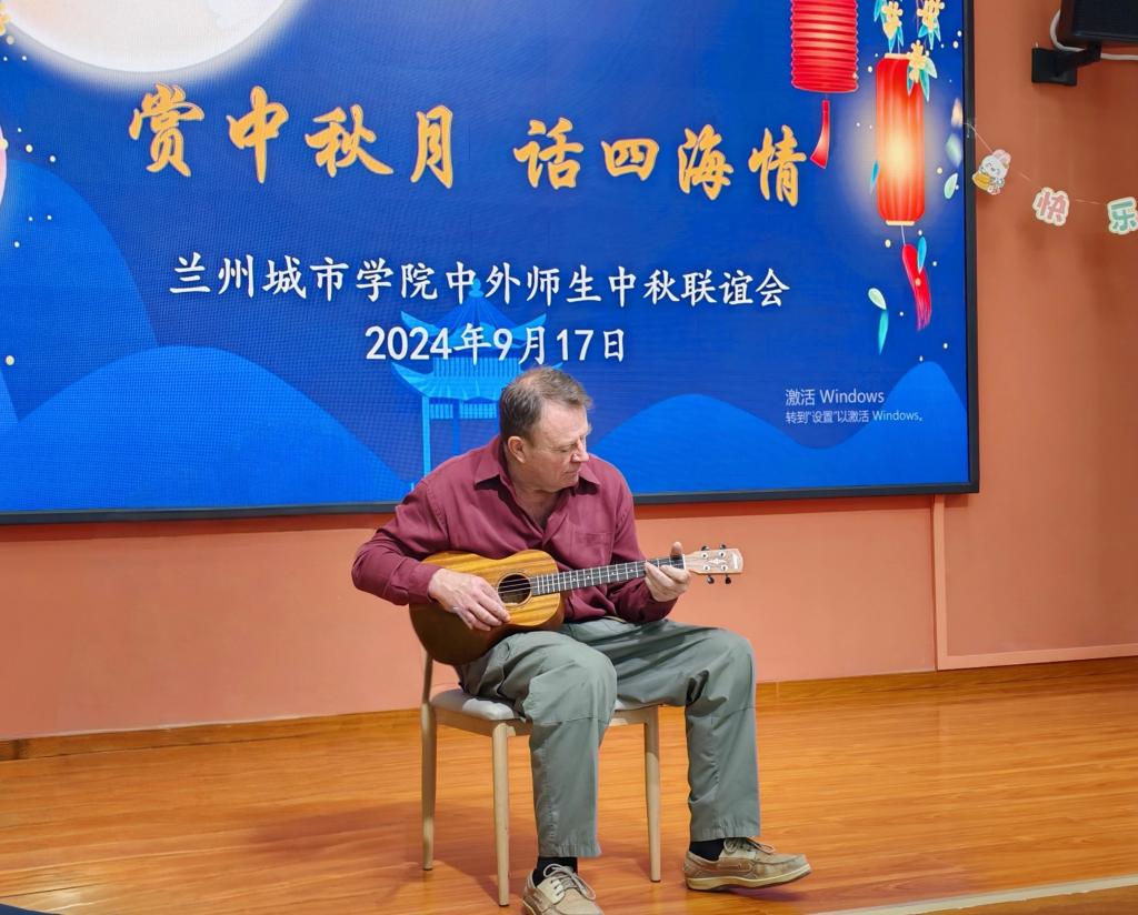 活动中,国际交流处负责人向外籍师生介绍了中秋节的起源和习俗。文史学院学生身着汉服朗诵了宋词《水调歌头·明月几时有》,演奏《友谊地久天长》《女儿情》;外教弹奏了尤克里里《圣路易斯布鲁斯》(The Saint Louis Blues);留学生集体演唱了《我们的爱情》(Между намил юбовь)《兔子》(Зая)。现场节日欢聚气氛热烈,留学生们载歌载舞的表演引来阵阵喝彩。外教科林表示,他在中国有4所大学数10年的教学经历,自己弹奏尤克里里和吉他多年了,这次中秋节活动是他首次登台亮相,令人难以忘怀。留学生们纷纷表示,他们初次来到兰州,从机场到学校到公寓、餐厅、教室,到处都感受到了学校对他们的热情和关爱,感到非常温暖和安心。