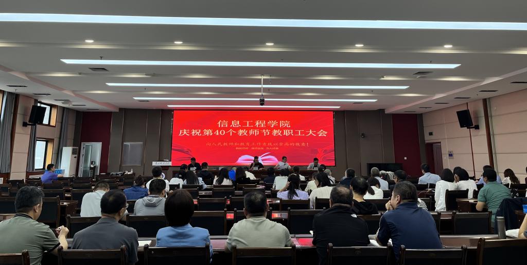 信息工程学院在培黎校区图书馆六楼会议室隆重召开庆祝第40个教师节教职工大会。会议传达了学校师德师风建设专题会议精神,向新入职教师赠送了教学用品,向教师导师、班主任颁发了聘书。