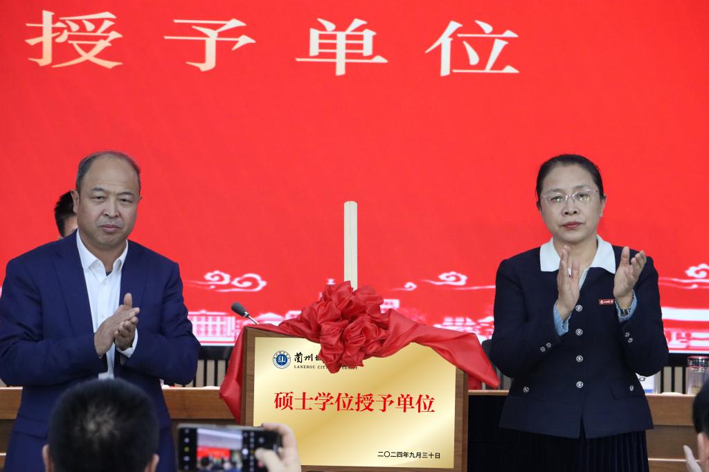 在热烈的掌声中,张国珍、曹洁为学校增列硕士学位授予单位揭牌。张国珍、韩高年为新增硕士学位授权点授牌。省教育厅领导和学校领导共同为beat365在线唯一官网硕士研究生导师颁发聘书。