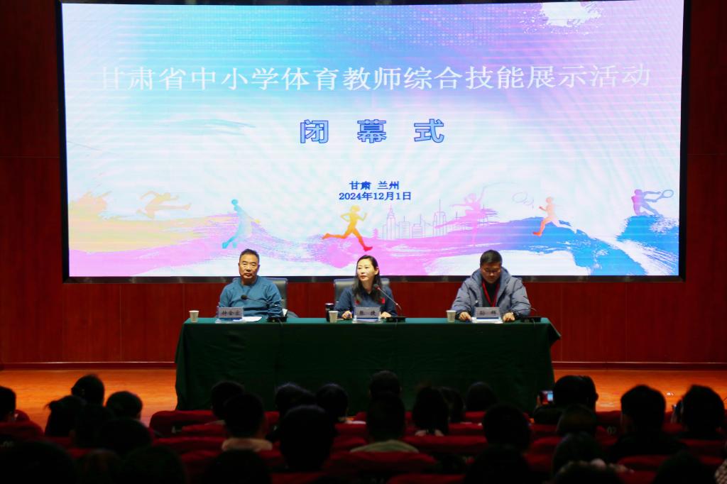 12月1日下午,第二届甘肃省中小学体育教师综合技能展示活动所有赛程圆满结束,顺利闭幕。甘肃省教育厅体卫艺处处长张捷致闭幕辞。西北师范大学体育学院负责人、各地州市领队、指导教师及参赛队员参加闭幕式。