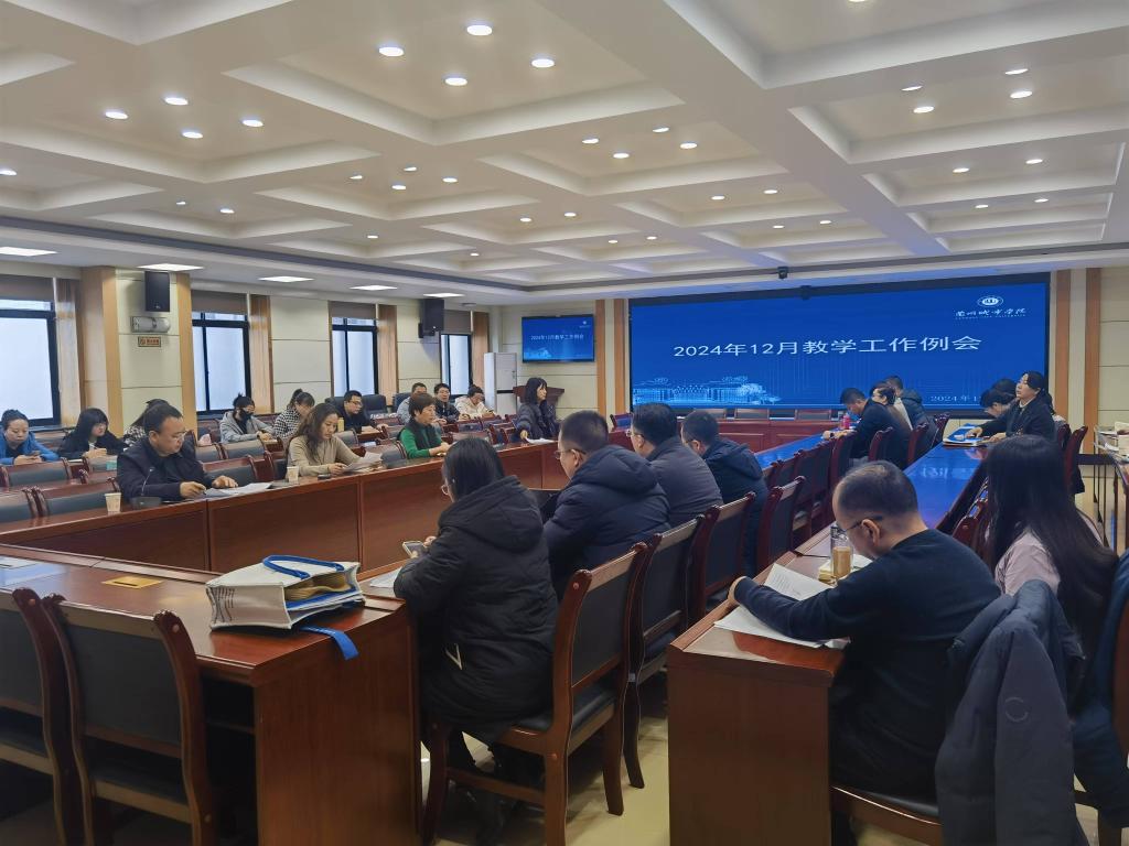 12月4日下午,学校在校本部知行楼一楼第二会议室召开2024年12月教学工作例会。各二级学院院长、主管教学副院长及教务处全体人员参加会议,校党委常委、副校长王素云出席并主持会议。