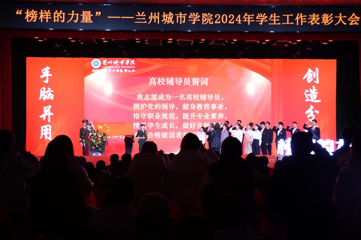 会上,2024年新入职辅导员宣誓仪式。国家奖学金获得者、学校单项奖学金获得者和2024年甘肃省高校辅导员素质能力提升骨干训练营二等奖获得者分别发表获奖感言,分享了他们的学习心得和成长感悟,感谢学校提供学习、成长的平台,感谢老师们的辛勤栽培和关心关爱,他们将始终保持积极向上的心态,努力向学、奋斗向上、自强不息、再接再厉,努力成长为堪当民族复兴大任的时代新人!