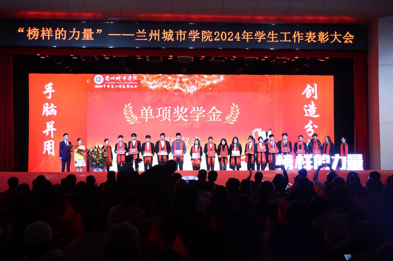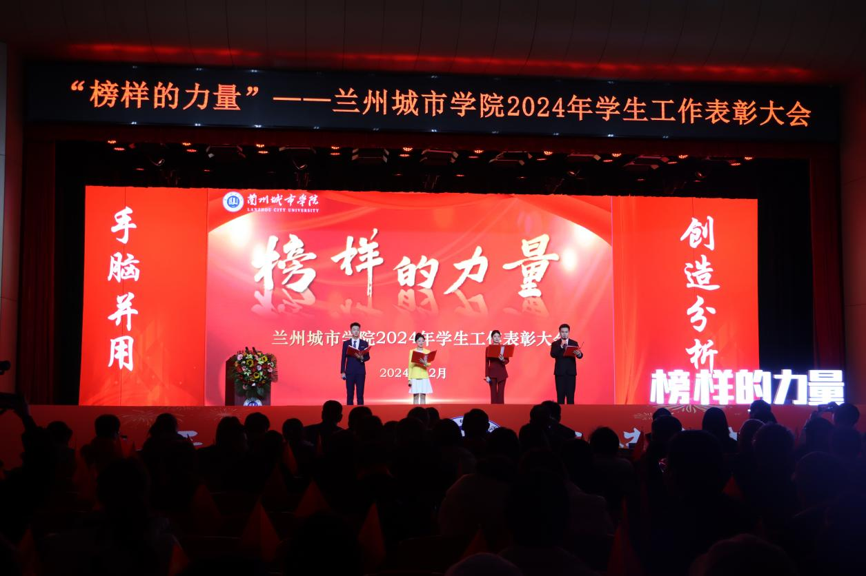 为全面总结学校2024年学生工作,涵育学风建设文化,打造“榜样的力量——朋辈领航”育人品牌,进一步促进学校班风、学风、校风建设,激发全体师生砥砺奋进,推动beat365学生工作高质量发展,12月27日下午,学校在校本部大礼堂隆重召开“榜样的力量”——2024年学生工作表彰大会。校党委副书记、校长韩高年,校党委常委、副校长李慕堂,校党委副书记牟录贵,校党委常委、副校长魏晋华和兰州市安宁区武装部负责人出席表彰大会。机关教辅部门负责人,二级学院党委书记、院长、分管学生工作副书记,二级学院学生工作办公室负责人,全体辅导员,获奖学生家长代表、“十佳班主任”代表和学生代表共1200余人参加大会。