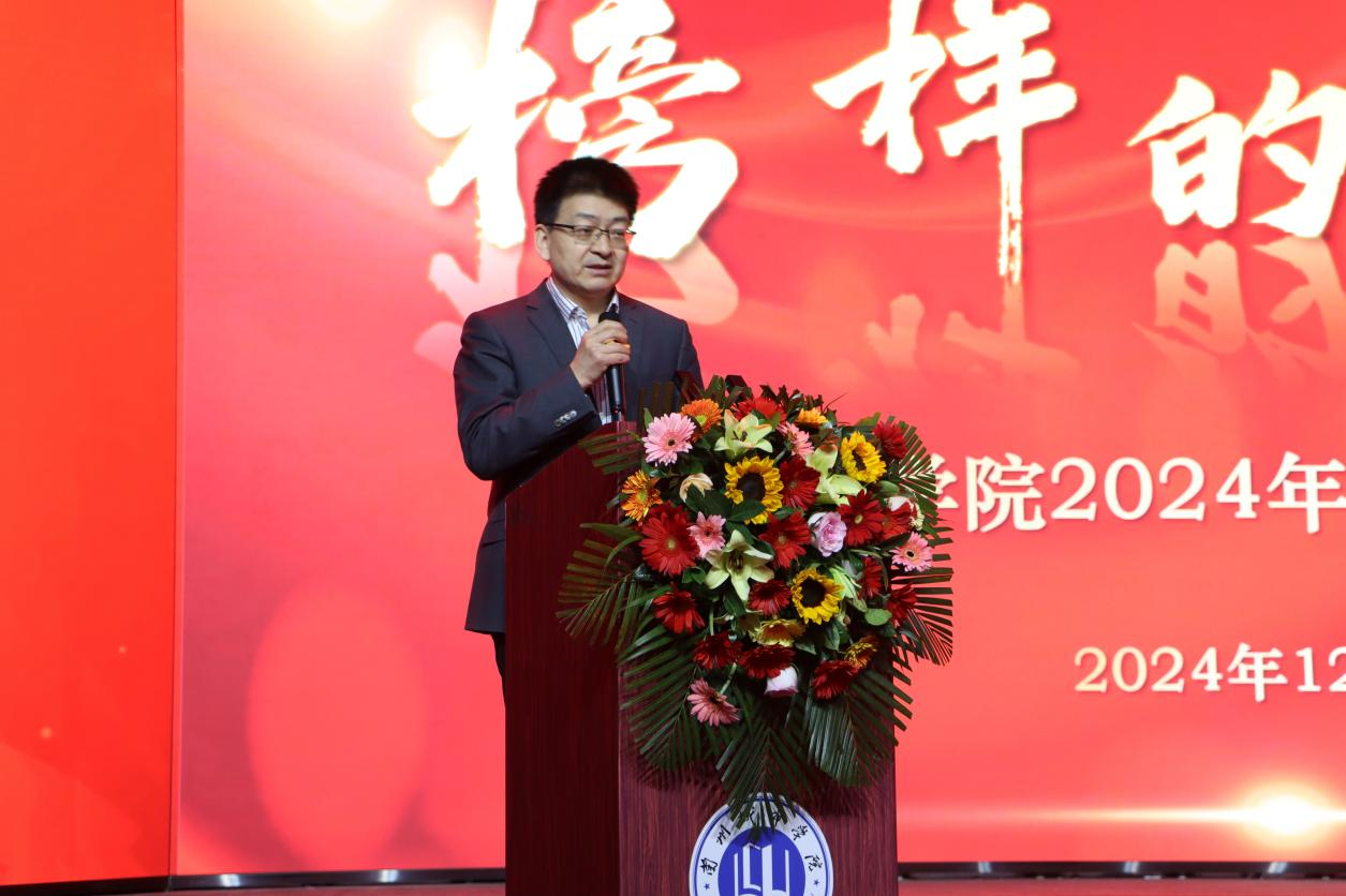 韩高年指出,2024年,对于学校各项工作而言,是重整行装、再谱新篇的一年,是砥砺奋进、谋求突破的一年,更是坚韧不拔、众志成城、硕果累累的一年。一年来,城院学子笃学求实、奋发有为,全校教职员工辛勤付出、潜心育人,受表彰的每一个团队、每一位同学,都闪耀着榜样的力量,是城院精神、城院文化的传承者和典型代表,更是推动中华民族伟大复兴的参与者和践行者!这一年,全体师生共同见证了每一个奋斗与拼搏的瞬间和足迹,共同书写着属于我们的新篇章!