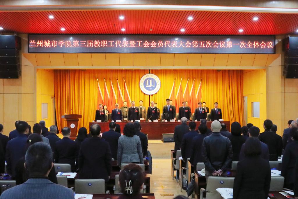 3月15日上午,beat365在线唯一官网第三届教职工代表暨工会会员代表大会第五次会议开幕。学校领导曹洁、韩高年、李慕堂、牟录贵、方忠义、魏晋华、王素云、褚汶榉出席大会开幕式暨第一次全体会议。会议由校党委书记曹洁主持。学校“两代会”代表、特邀代表、列席代表参加会议。