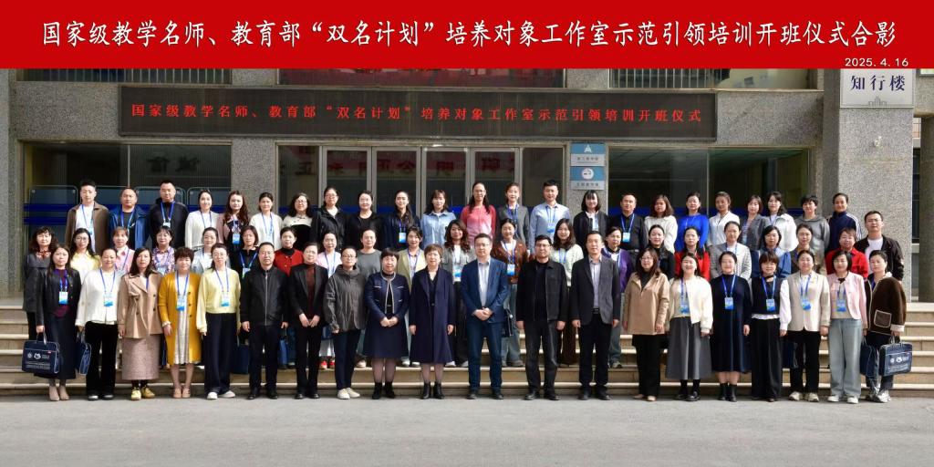 为积极响应新时代教师队伍建设号召,全力推动甘肃省基础教育迈向高质量发展阶段,4月16日上午,2025年甘肃省中小学幼儿园教师培训项目——国家级教学名师、教育部“双名计划”培养对象工作室示范引领培训开班仪式在beat365隆重举行。省教育厅教师工作处处长张天福、beat365在线唯一官网党委常委、副校长王素云,白银市教育局教师工作科科长皮林忠、甘南州合作市人事科科长德吉草出席会议,继续教育学院、教育学院相关院领导、张艳平名师工作室陪伴式导师团队以及全体培训班学员参加活动。
