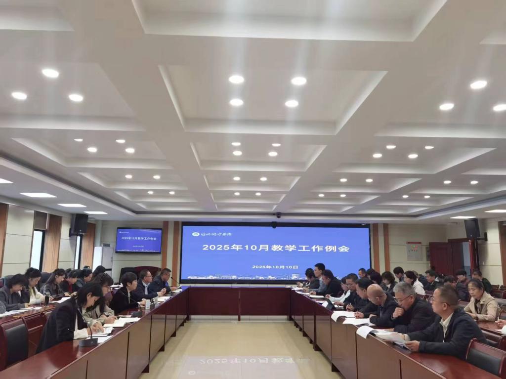10月10日下午,学校在知行楼一楼第二会议室召开2025年10月教学工作例会。各二级学院院长、主管教学副院长及教务处全体人员参加会议,校党委常委、副校长王素云出席会议并讲话。