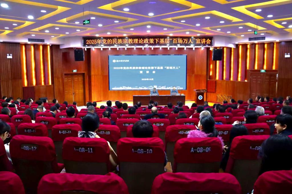 此次宣讲会是学校贯彻落实中央及省委关于民族宗教工作部署的重要举措,旨在进一步提升干部教师的政治素养和业务能力,为维护校园和谐稳定、助力高水平应用型大学建设凝聚共识。