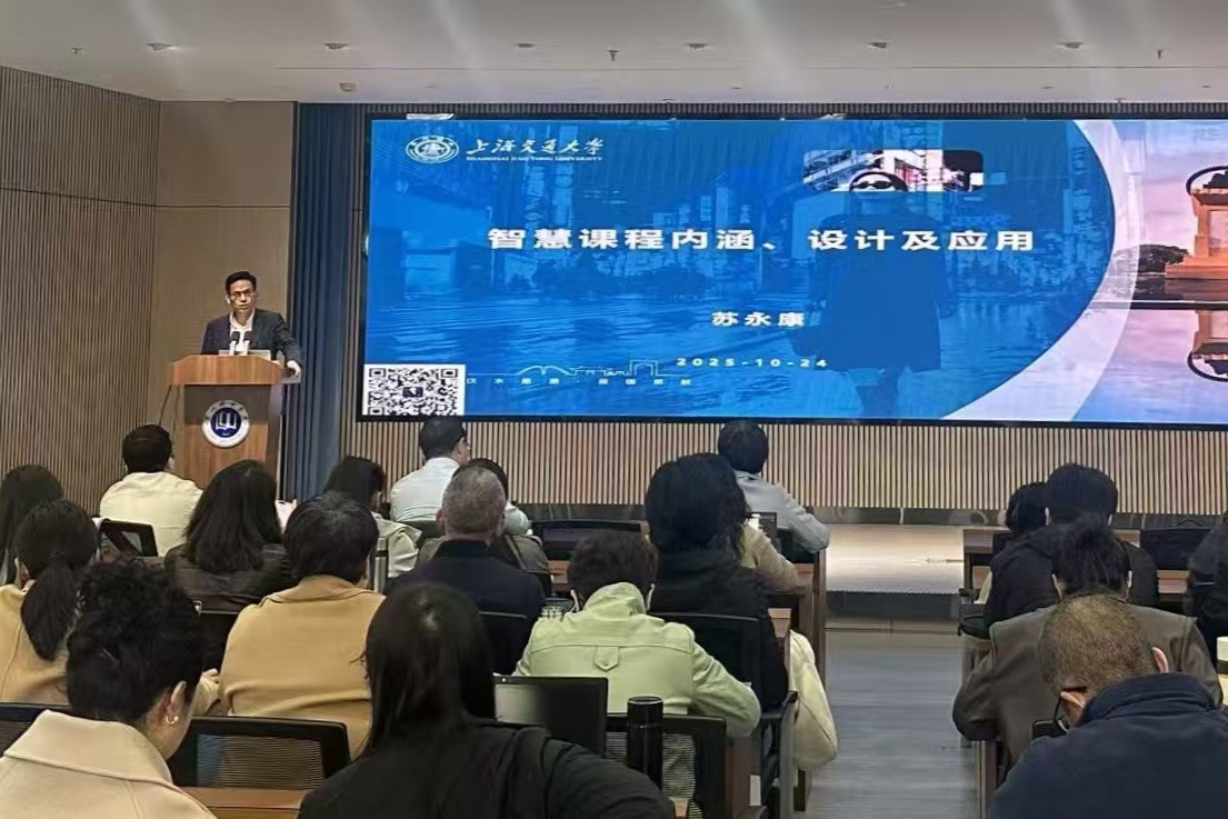 为深入贯彻落实智慧课程建设要求,提升教师信息化教学能力,10月24日下午,上海交通大学教育技术中心课程平台与数据室副主任苏永康应邀来校开展“智慧课程内涵建设及设计”专题培训。校党委常委、副校长王素云主持培训,各学院教学副院长,各专业负责人、骨干教师代表、校级智慧课程负责人及教务处全体人员共百余人参会。