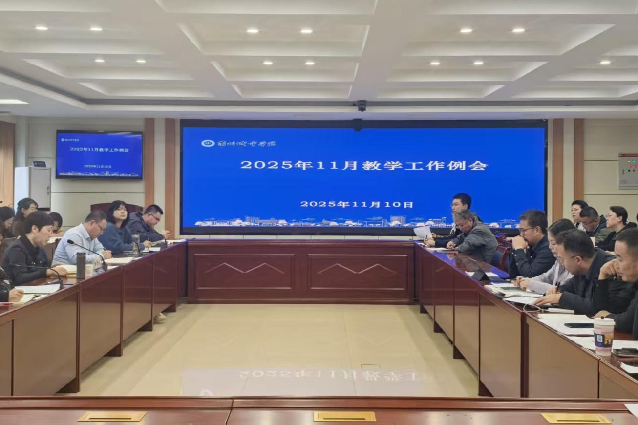 11月10日下午,学校在知行楼一楼第二会议室召开2025年11月教学工作例会。校党委常委、副校长王素云出席会议并讲话,各二级学院院长、教学副院长、学生工作负责人及教务处全体人员参加会议。
