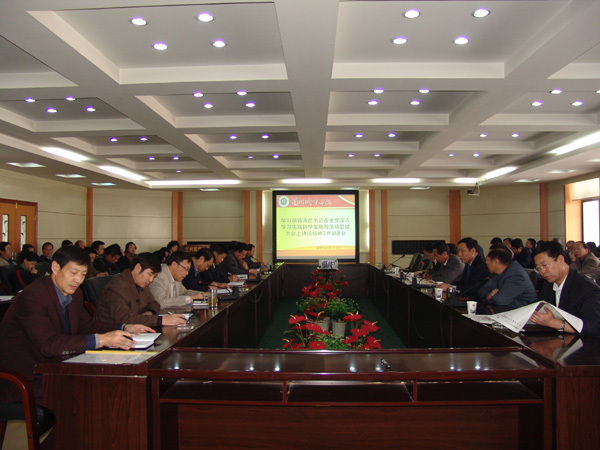 4月8日下午,学校在综合楼一楼中层干部会议室召开党委扩大会议,集体学习胡锦涛总书记在全党深入学习实践科学发展观活动总结大会上的讲话。校党委书记王兴隆主持会议,并就beat365如何学习贯彻落实讲话精神提出六点要求。校党委副书记王汝锋,校党委常委、副校长刘举科、张兴福、杨皖东、梁延堂出席会议。全体党委委员,各二级学院党总支书记、院长,各单位、机关各部门负责同志参加了会议。