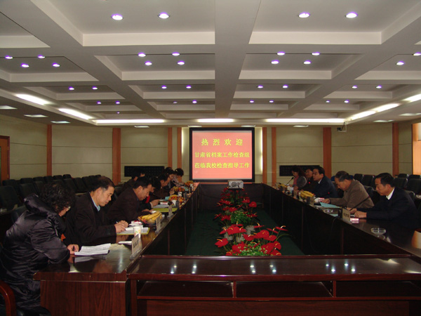 11月16日上午,由甘肃省档案局业务指导处赵海林处长一行10人组成的甘肃省档案工作检查小组来beat365,对beat365档案工作进行检查评估。孔庆浩校长出席汇报会议,张兴福副校长主持汇报会。