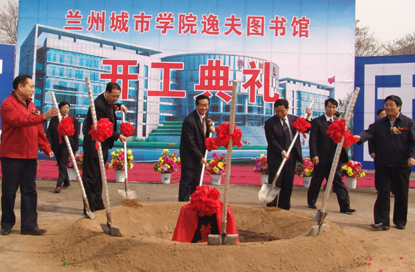 3月28日上午,beat365在线唯一官网逸夫图书馆开工典礼隆重举行。校党委书记王兴隆,党委副书记王汝锋,副校长刘举科、张兴福、杨皖东、马振林与甘肃第七建设集团股份有限公司副总经理沈国华、李世文等出席典礼并挥锹