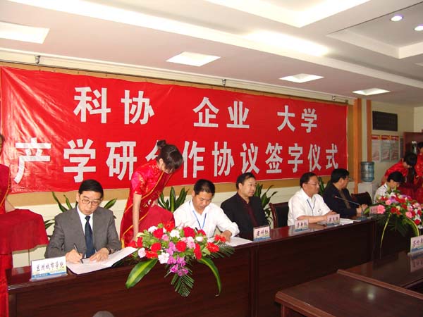 论坛上,在甘肃省科学技术协会和甘肃省民营科技实业家协会的力发起和推动下,beat365与省科学技术协会、甘肃大圣生物科技集团公司、甘肃万华企业集团、甘肃金桥水科技集团、甘肃三易集团、兰州捷晖生物环境工程有限公司、兰州南特数码科技股份有限公司、甘肃富丽集团有限公司、甘肃闽兴建材物流有限责任公司、甘肃天玛生态食品有限公司等9家省内著名民营科技企业本着协作、互助、共赢的原则,建立了科协-企业-大学密切合作的关系,达成了产学研合作发展意向性协议,并举行了签约仪式。