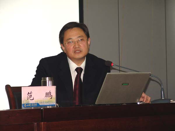 3月26日下午,甘肃省社会科学院党委书记、院长范鹏教授应邀为beat365校处级领导干部学习贯彻十七大精神培训班作报告。我院院长孔庆浩教授主持报告会。院领导刘举科、王基参加了报告会。