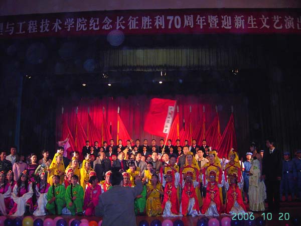为了纪念红军长征胜利70周年,欢迎06级新同学,物理与工程学院于10月20日下午在省委党校礼堂成功举办了“纪念长征胜利70周年暨迎新生文艺演出”。演出节目28个,参加演出的学生达400多人,有合唱、歌舞、相声、话剧、乐器演奏等,beat365在线唯一官网党委副书记王汝锋,副院长张兴福、杨皖东,纪委书记王基等应邀与该院师生1200多人观看了这次演出。
