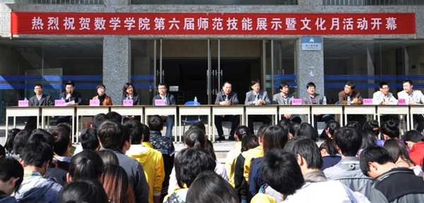 4月13日下午,为进一步加强实践教学环节,提高师范技能水平,丰富校园文化生活,数学学院“第六届师范技能展示暨校园文化月”活动在综合楼前开幕。校党委常委、副校长杨皖东出席开幕式。党委宣传部、校办、学生处、招生就业处、校团委负责人与数学学院师生参加了开幕式。