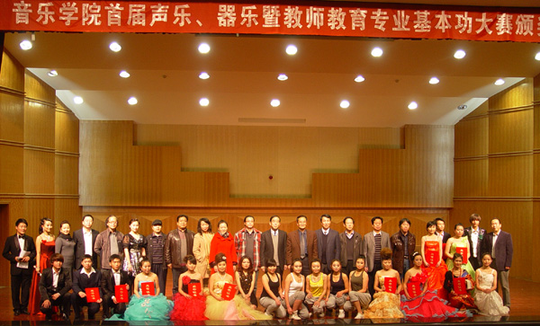 12月2晚,音乐学院首届声乐器乐暨教师教育专业基本功大赛颁奖晚会在音乐厅举行。校党委书记王兴隆,校长孔庆浩,校党委常委、副校长马振林出席颁奖晚会并为获奖同学颁奖。