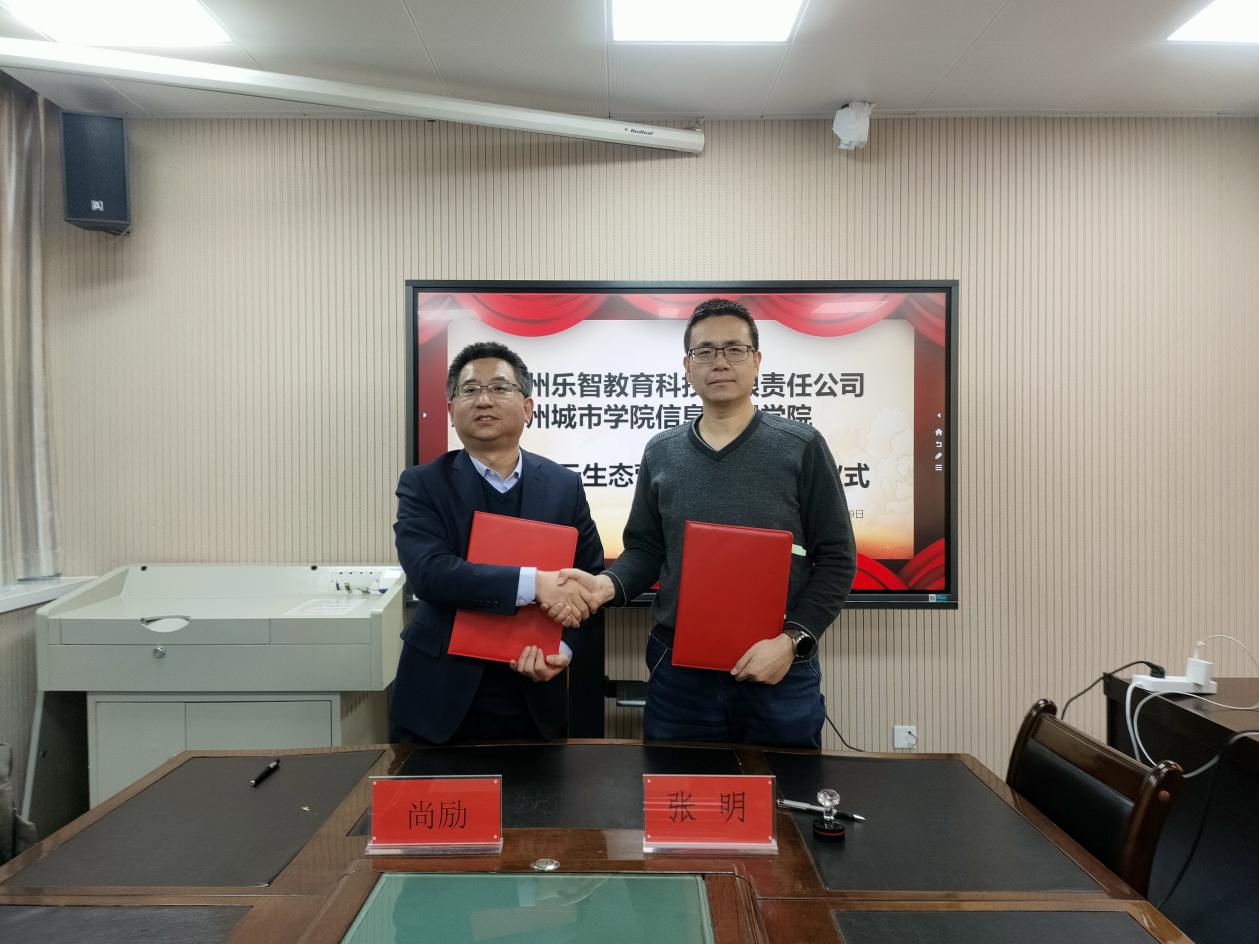 座谈会后,信息工程学院与兰州乐智教育科技有限责任公司签署了“天翼云生态营合作协议”,双方将在人才培养、导师制、入营待遇、先进前沿科技研发合作、成立天翼云生态营科学技术委员会、数字能力开放平台、组建产业创新联盟等方面开展合作。不仅为下一步双方在科研项目合作、人才培养等方面奠定了坚实基础,同时也将助力学院应用型人才培养与学科专业发展。
