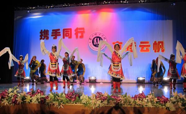 10月29日晚,培黎工程技术学院 “携手同行 直挂云帆”2010年迎新生文艺晚会在培黎校区大学生活动中心隆重举行。校党委副书记王汝锋,校党委常委、副校长杨皖东、梁延堂应邀观看了晚会。学校招生就业处、校团委、学生处、实训中心等部门负责人与该院师生员工1400多人观看了演出。