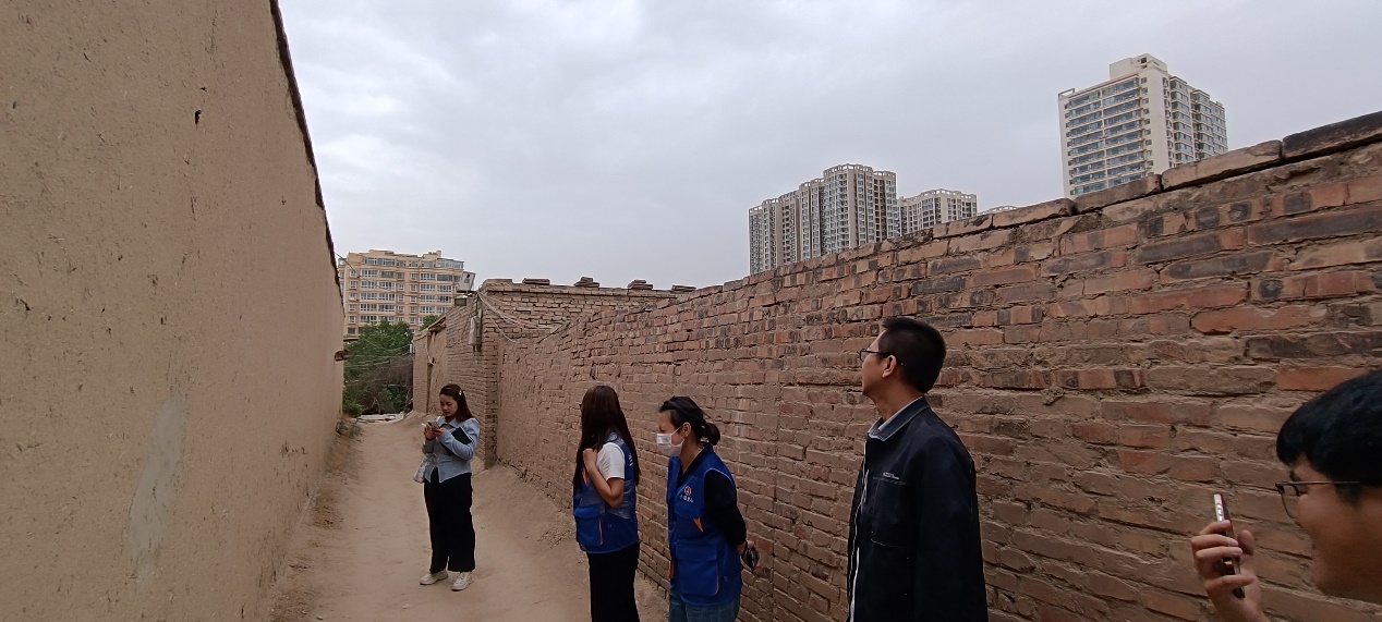 活动中,城市建设学院“城建未来”学生社团部分成员在社团指导教师带领下赴七里河西津桥社区火电家园南侧至铁路之间的居民自建房及周边场地现场调研,就场地改造的步骤、方法、技术难度、造价等方面向服务中心提供了咨询服务,为社区优先解决道路硬化和安全防护等基础设施问题提出意见建议, 并设计3套改造技术方案。