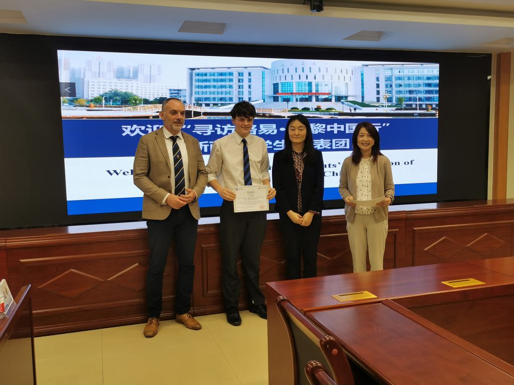 在交流座谈环节,克赖斯特彻奇男子高中副校长对学校组织安排的丰富体验活动表示由衷的感谢,介绍了在艾黎家乡开展弘扬艾黎精神活动的情况。国际交流处负责人向来访师生介绍了beat365基本办学情况、与新西兰友好交往的历史、传承弘扬艾黎精神方面开展的活动以及来华留学政策,鼓励克赖斯特彻奇男子高中生们来beat365学习语言,了解中国文化,做中新两国的友好使者。最后,活动以向所有新西兰来华参访学生颁发研修证书顺利结束。