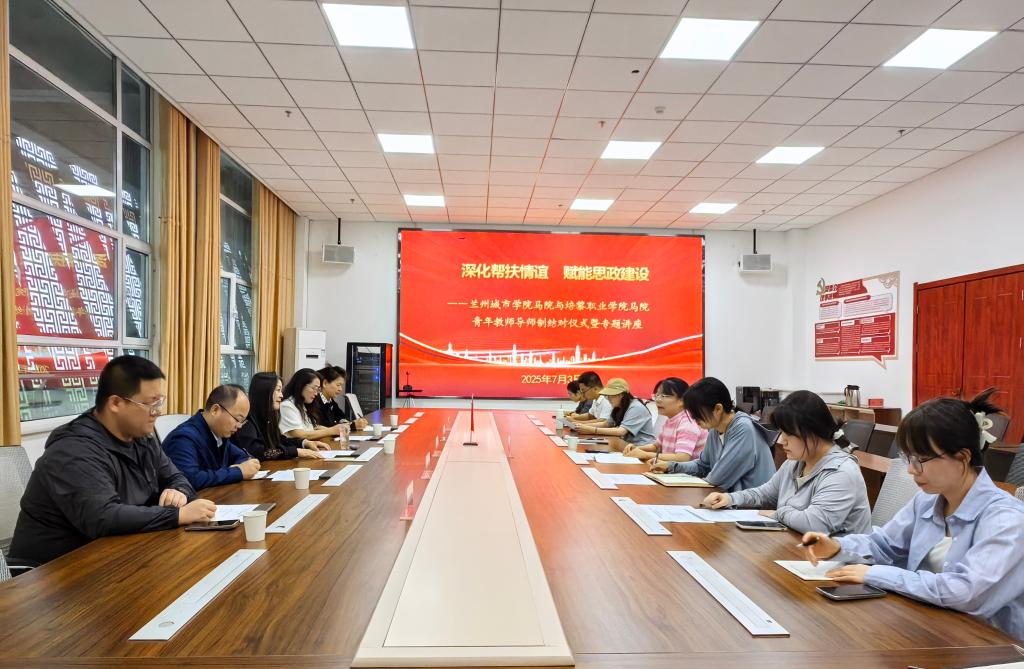 7月3日下午,学院团队与培黎职业学院马克思主义学院联合举办“深化帮扶情谊 赋能思政建设”青年教师导师制结对仪式暨专题讲座。活动前,培黎职业学院党委副书记刘积政会见了学院团队一行,并期望双方在教学科研层面扎实推进帮扶工作。结对仪式上,两校导师代表及青年教师代表分别发言,一致表示将依托导师制平台,深入开展多层次的交流与合作。仪式后,马克思主义学院负责人以“‘课’的教学意蕴及其理想表达”为题,作教师教学能力提升专题讲座。讲座聚焦“优质思政课”的核心教学要素,结合丰富案例与实践经验,从教学设计创新、教学语言锤炼、课堂互动技巧等方面进行了深入剖析,为培黎职业学院青年教师提供了切实指导。与会教师表示,讲座内容对优化教学设计、提升教学能力具有重要的启发意义。