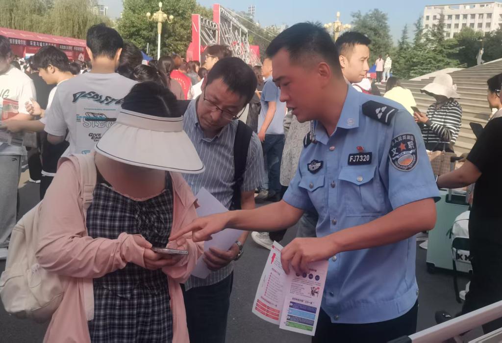 在报到区域,派出所民警与学校工作人员联合开展反诈宣传教育,通过发放反诈手册、现场讲解典型诈骗案例等方式,向新生及家长介绍冒充教师收费、虚假兼职、校园贷等常见诈骗形式,并指导安装使用“反电诈金钟罩”预警系统。公安民警同时带领校巡逻队加强校内及周边治安巡查,重点排查报到点、宿舍区等区域,全面防范安全隐患。