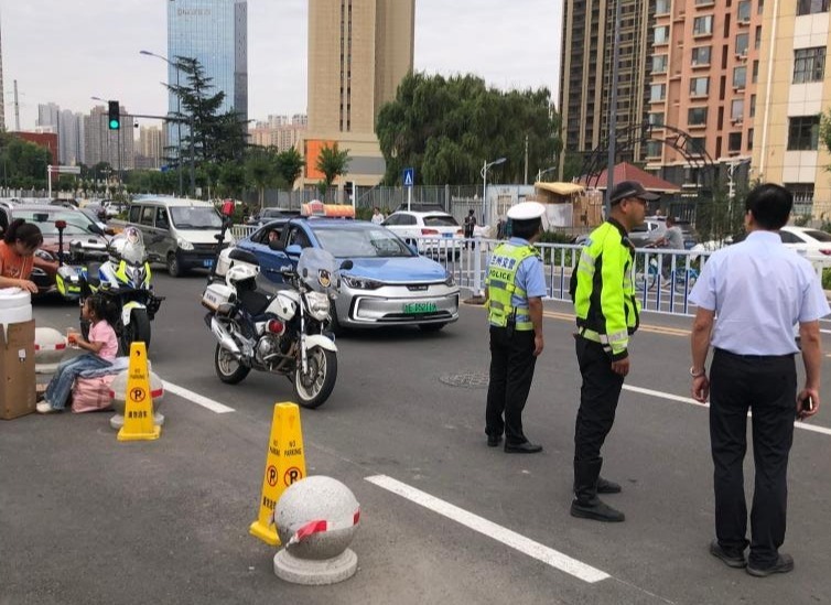 针对报到期间校园周边人车流量增多的情况,安宁交警大队提前制定疏导方案,派驻警力值守学校周边主要路段,实施分段管控与车辆分流,保障新生接送车辆优先通行,并安排专人引导行人,有效维护交通秩序。