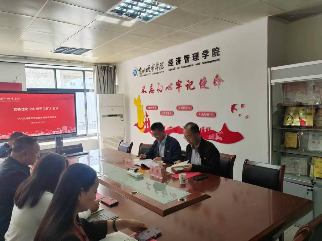 9月25日下午,经济管理学院召开党委理论学习中心组学习会扩大会议。学校列席旁听组成员张鹏飞、李强列席旁听。学院全体处科级干部、党委委员、各党支部书记参加。学院党委负责人主持会议。