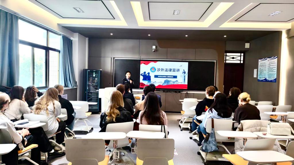 活动中,出入境管理处民警系统解读了《中华人民共和国出入境管理法》,通过“案例还原+条款解读+处罚说明”的模式就留学生关注的法律问题展开系统解读,并针对签证与居留许可延期、临时住宿登记申报、机动车驾驶、毒品危害等涉外法律和日常法规的关键问题为留学生们进行了法律普及和安全教育。活动还公布了出入境咨询热线等求助渠道,借助警校合作,为留学生提供更具针对性的法律服务。