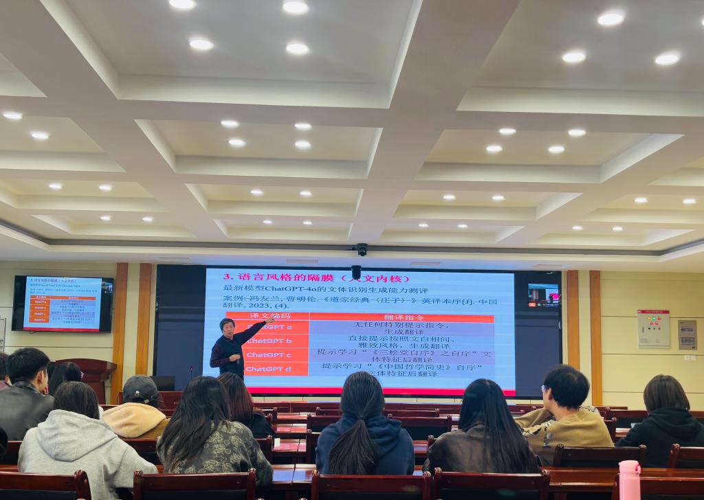 在交流环节,与会师生围绕大语言模型在教学与实践中的应用积极提问,张政结合具体案例逐一解答。大家纷纷表示,通过此次讲座,对人工智能时代的翻译研究有了更深入的理解,为今后的教学与学习提供了重要启发。