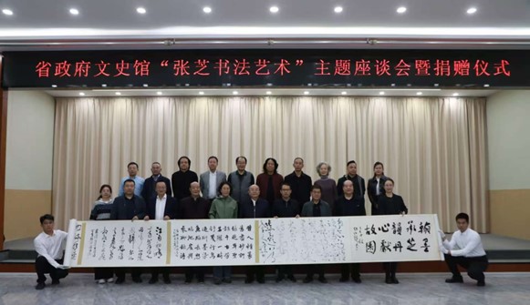 在瓜州县举行的“张芝书法艺术”主题座谈会暨书法长卷捐赠仪式上,王华存强调此次活动是传承张芝书法艺术、推动地方文旅融合发展的具体举措。万代红代表省政府文史馆向瓜州县捐赠了由张改琴、翟万益等11位馆员研究员及米文佐教授共同创作的18米书法长卷。与会专家围绕张芝书法品牌建设与当代转化等议题进行了深入研讨。参会人员还赴张芝书法艺术馆考察交流,并举办“池水尽墨”主题笔会,通过笔墨创作传承弘扬张芝书法艺术。