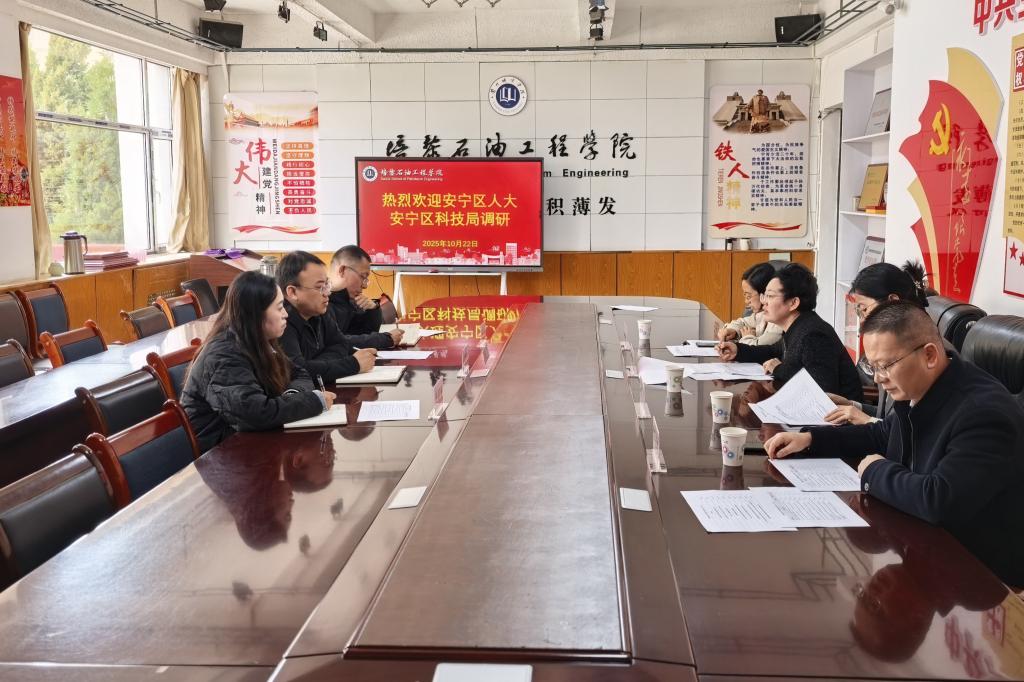 座谈会上,院长系统介绍了学校“手脑并用、创造分析”的办学理念,重点汇报了石油与天然气工程省级重点学科建设成效、两个省级一流专业的特色优势,以及科研成果转化方面的进展。安宁区人大代工委主任王霞结合全区科技创新规划,提出要依托""协同平台和兰州市智创中心建设,着力破解科技资源对接难题。与会领导对学院科研工作给予充分肯定,并就新专业申报、学位点建设等提出建设性意见。
