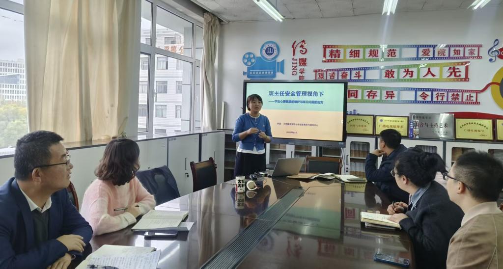 为提升班主任心理健康教育工作能力,11月6日中午,传媒学院在明理楼会议室召开班主任心理健康工作培训会。校党委学生工作部心理健康中心教师应邀主讲,学院全体辅导员、班主任参加培训。