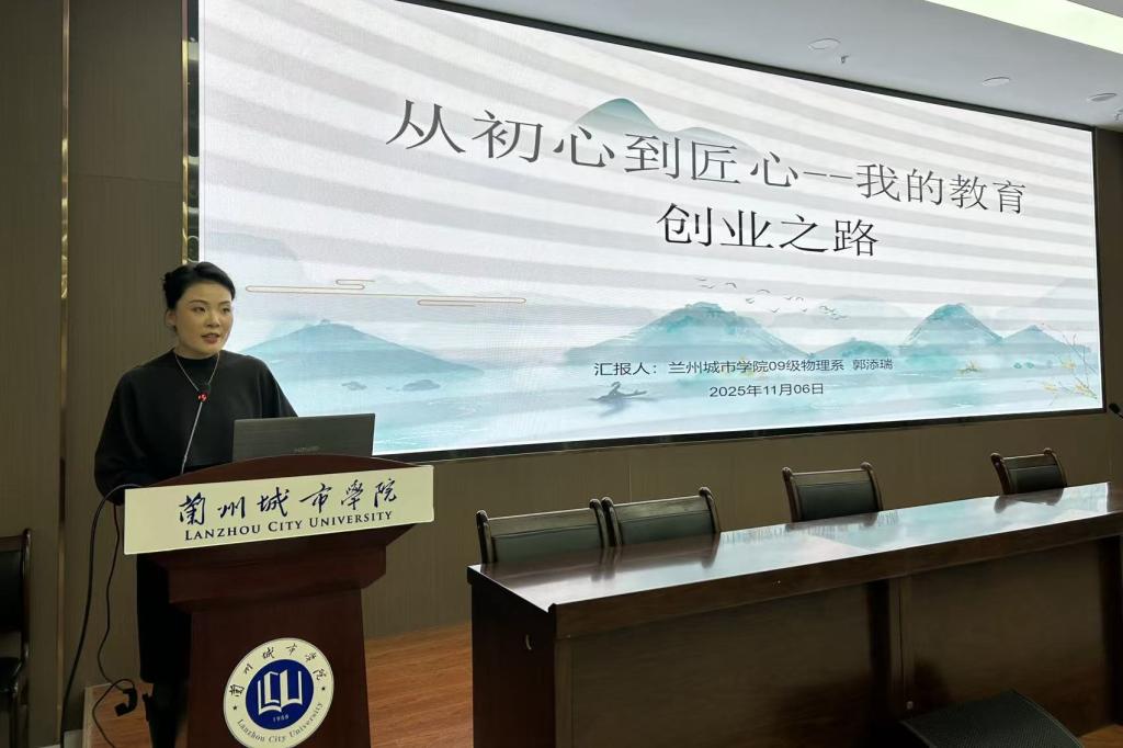 11月6日,电子工程学院邀请物理学专业2009级校友、兰州市城关区忙果培训学校校长郭添瑞返校,在培黎校区图书馆举办“从初心到匠心,我的教育创业之路”专题讲座。学院相关负责人及百余名学生参加活动。