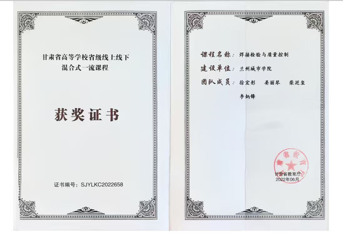3.专业课程深耕核心能力:以甘肃省一流本科课程《焊接检验与质量控制》为标杆,覆盖多元技术,对接国际国内双重标准。该课程于2025年再次获批校级产教融合智慧课程。