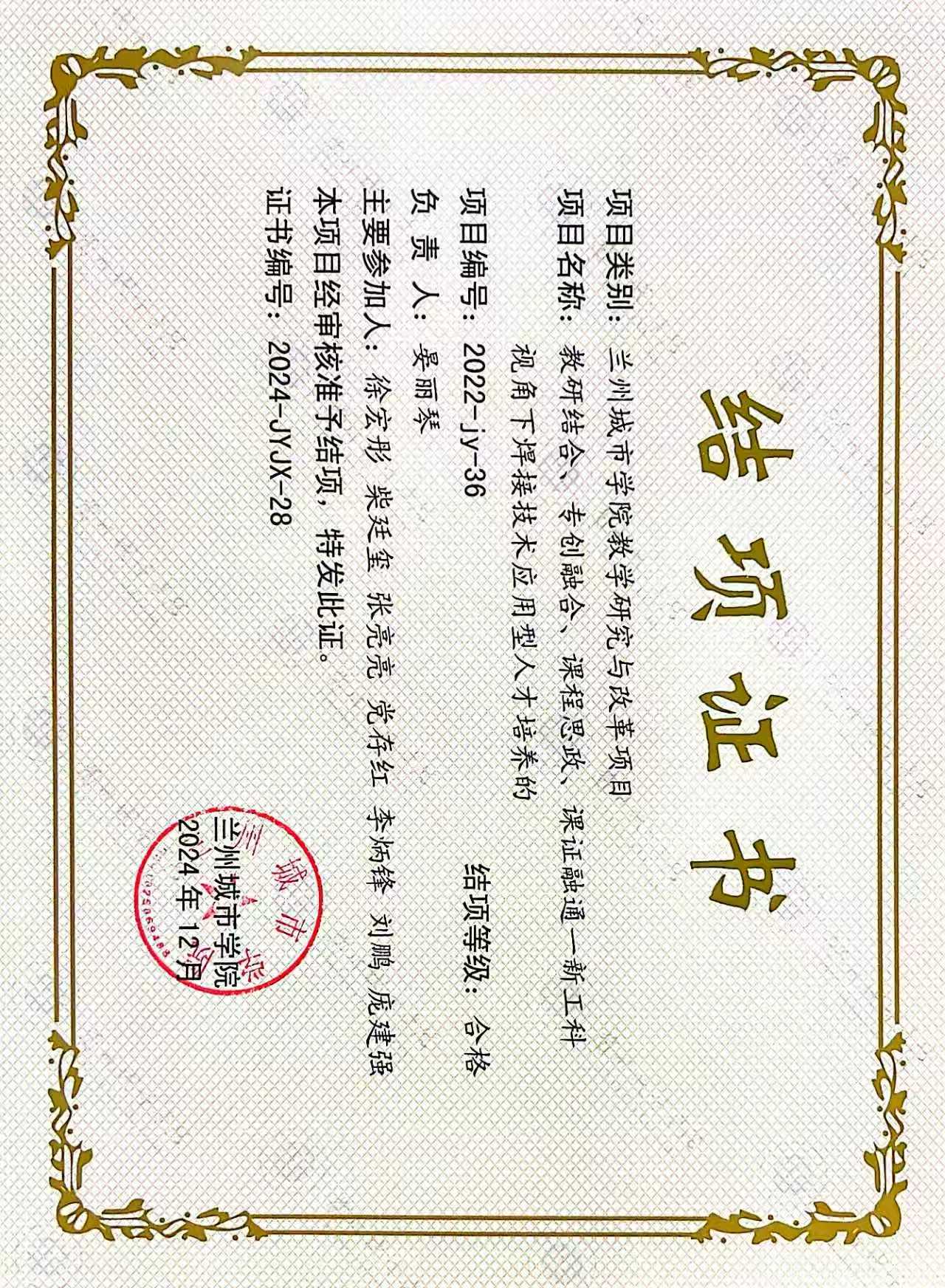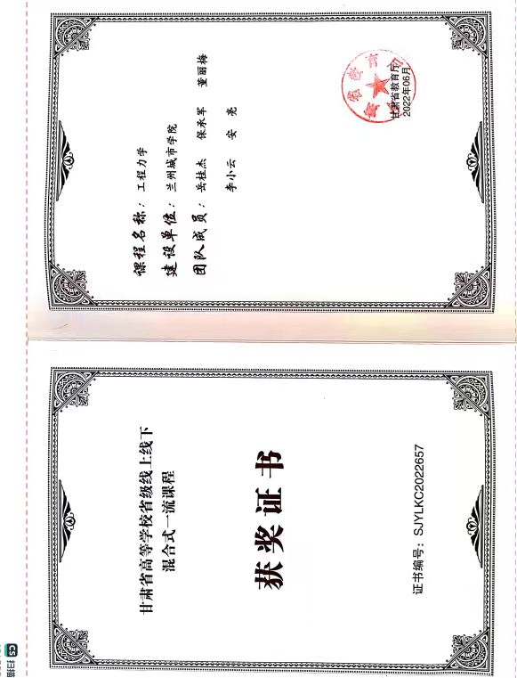 近两年,教师团队获批甘肃省教育科学规划项目3项,获批高等教育教学改革研究项目1项;获批校级立项规划教材2部,出版专著1部;基于新工科理念,发表教育教学论文4篇。
