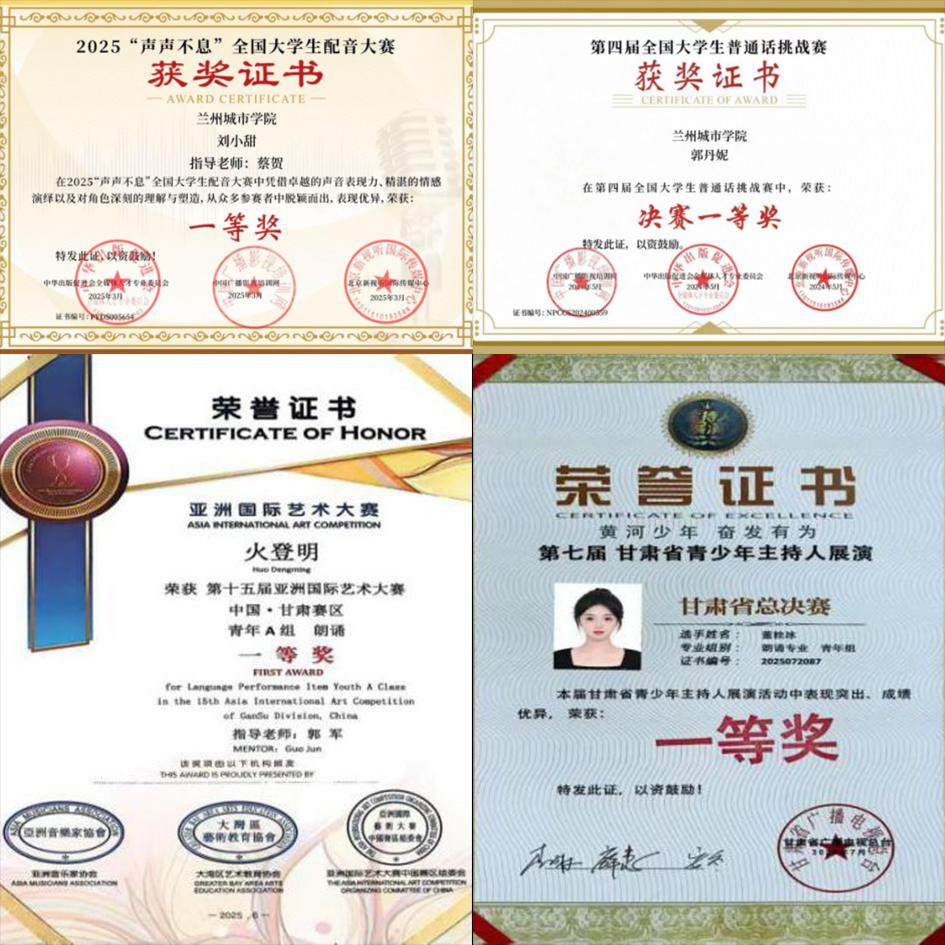 特别是在朗诵、配音、主持等核心领域,学生凭借扎实功底与出色临场发挥,多次在全省舞台上崭露头角,充分展现专业教学质量与学生综合素质。竞赛成果反哺课堂教学,推动课程内容动态更新,形成“赛教互促、良性循环”的发展格局。