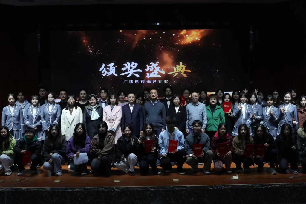 11月14日晚,传媒学院“光影视界”广播电视编导专业竞赛作品展播暨颁奖晚会在校本部大学生活动中心成功举办。活动通过作品展映与颁奖典礼相结合的形式,集中展示了广播电视编导专业学生的创作成果,为现场师生呈现了一场专业性与艺术性并重的视听盛宴。