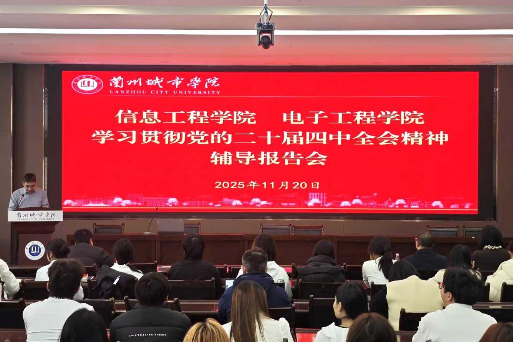 为引导师生深入学习贯彻党的二十届四中全会精神,自觉用全会精神武装头脑、指导实践、推动工作,1120日,信息工程学院党委与电子工程学院党委在培黎校区图书馆六楼会议室联合举办专题辅导报告会。西北师范大学马克思主义学院副教授、硕士研究生导师刘姌博士应邀作报告,两学院党员及师生代表参加学习。