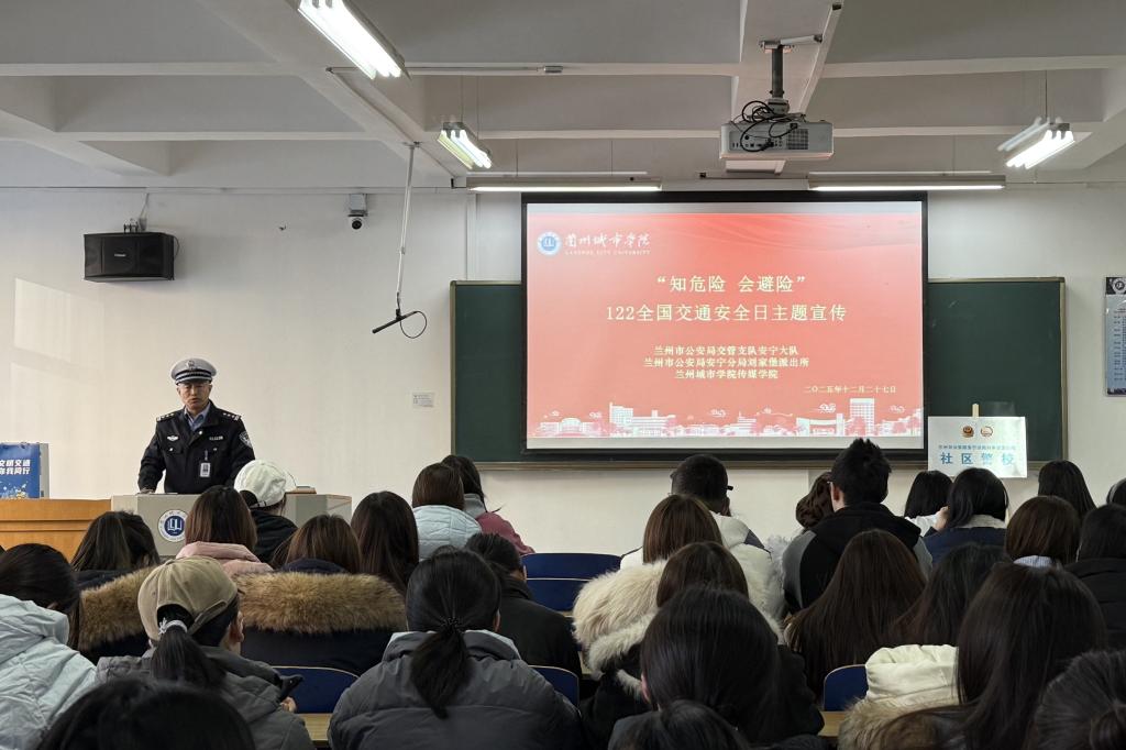 11月27日,学院邀请兰州市公安局交管支队安宁大队联合刘家堡派出所开展“知危险 会避险”主题宣讲。民警结合大学生出行特点,重点分析校园及周边常见交通安全隐患,通过真实案例详细讲解电动车违规行驶、行人过马路分心等行为的危害性,强调“一盔一带”的重要性,并普及校园限速、斑马线礼让等交通规则与避险技巧。