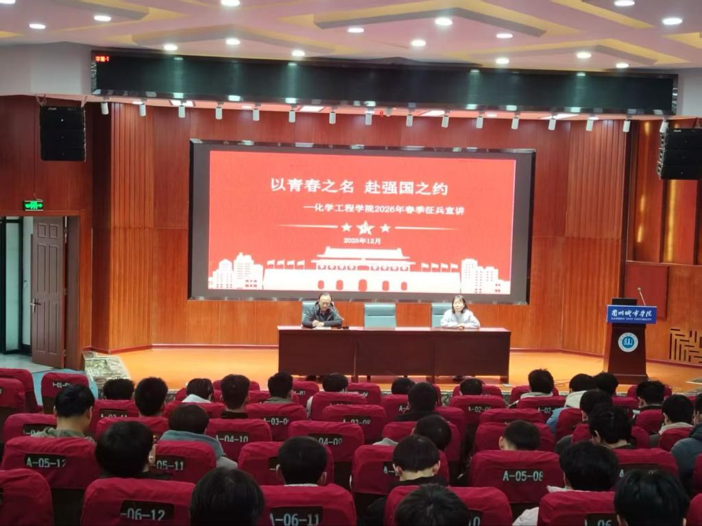 12月30日下午,化学工程学院在大学生活动中心召开2026年春季应征入伍动员宣讲大会。